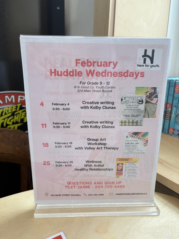 Thanks to Huddle Manitoba, I was able to come to a youth center three times this winter to do writing workshops with some students. These were a new experience for me, but they ended amazingly. A lot of good chats and each student was so thoughtful with their sharing of their writing. It was really an open vulnerable environment.