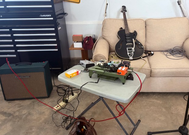 I have so much to learn about all of this but the set up so far is a newer amp, all type of sound altering pedals, and of course the Guild guitar.